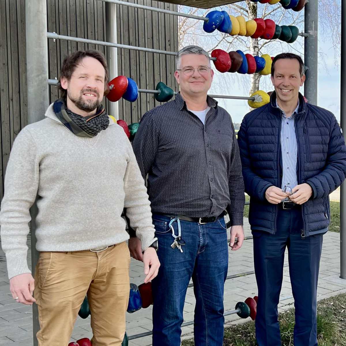 Austausch mit den Schulleitern (vlnr.): Tobias Heep (kommissarischer Schulleiter), Tobias Gänzle (kommissarischer stellv. Schulleiter), Thomas Dörflinger. © Foto: privat