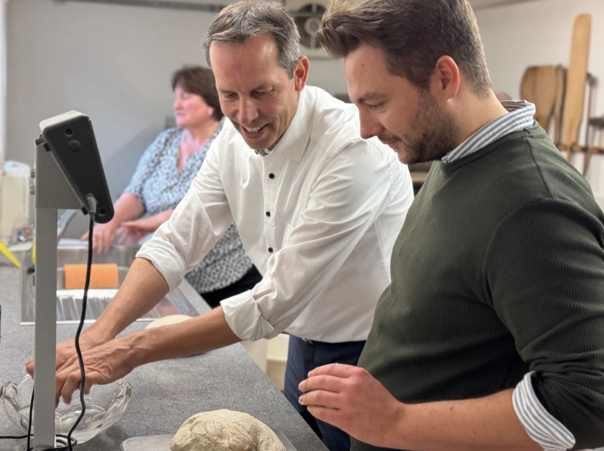 Der Besuch endete mit einem Ausklang im Schützenhaus bei kleinem Vesper. Das Brot hierfür durften Bürgermeister Hepp und Thomas Dörflinger kurz zuvor selbst unter Anleitung von Claudia Wachter und Lydia Imhof im Backhaus in Alleshausen kneten, formen und im Ofen herausbacken. Oberschützenmeister Benjamin Schlegel stellte die Jugendarbeit und die moderne Schießanlage vor. Sowohl Bürgermeister als auch Landtagsabgeordneter ließen es sich nicht nehmen, selbst auf die Scheiben zu schießen.